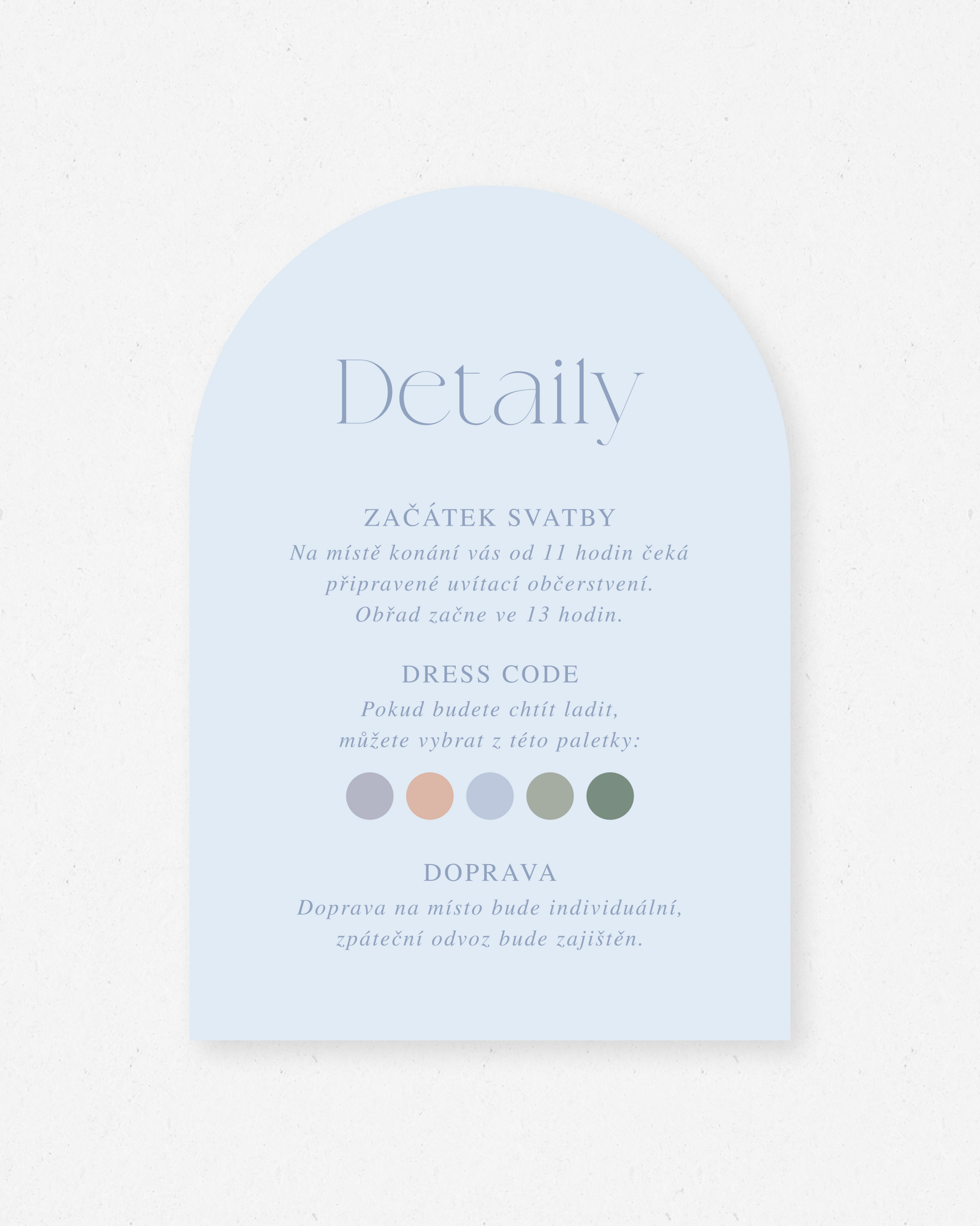 Doplňková kartička, která se vkládá k hlavnímu svatebnímu oznámení. Slouží k tomu, abyste hostům jednoduše sdělili všechny důležité informace, které se na samotné oznámení nevejdou.